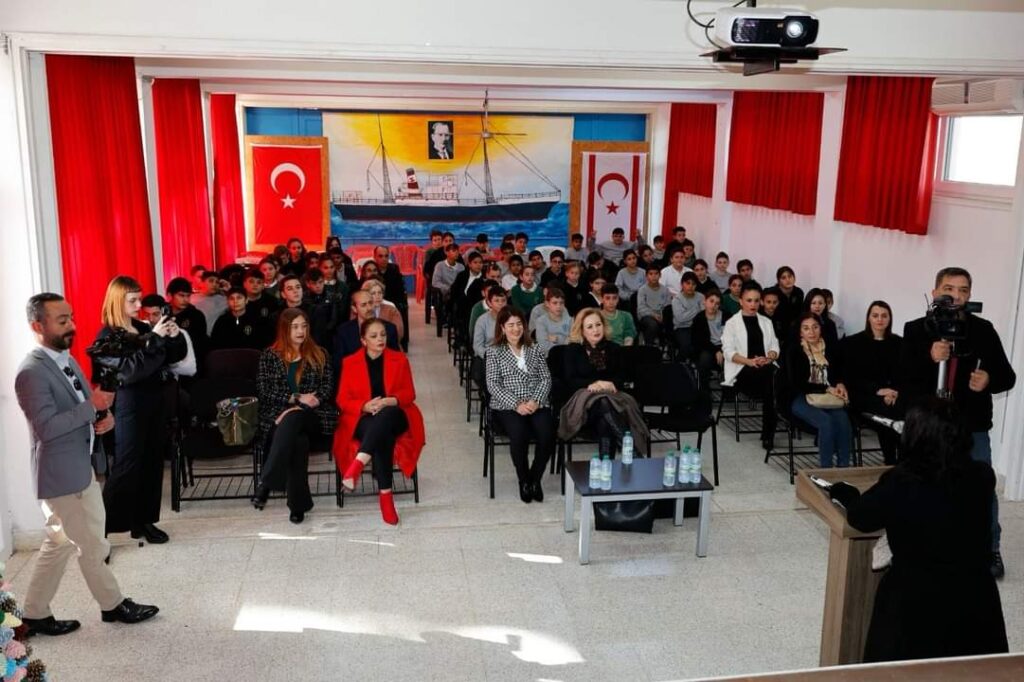 The Zero Waste goal encourages public awareness, promoting the recycling of waste and supporting its use in ecosystems without causing harm, thereby carrying the mission of leaving a clean environment for future generations. The ‘Zero Waste Target’ project, initiated and continued under the coordination of Prof. Dr. Özge Özden, the Dean of the Faculty of Agriculture at Near East University, and under the patronage of Mrs. Sibel Tatar, the wife of the President of the TRNC, is being maintained as a pioneering and significant project in terms of waste management since its commencement in 2022. In this context, on January 4, 2024, Dean Prof. Dr. Özge Özden, accompanied by Mrs. Sibel Tatar, visited Esentepe Middle School to deliver a comprehensive presentation on waste separation as part of the ‘Zero Waste Target’ Project.