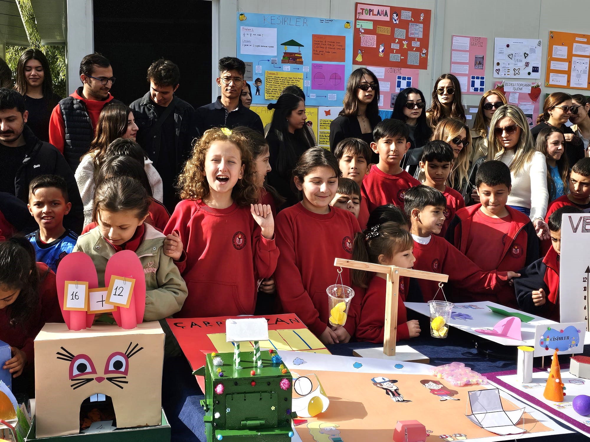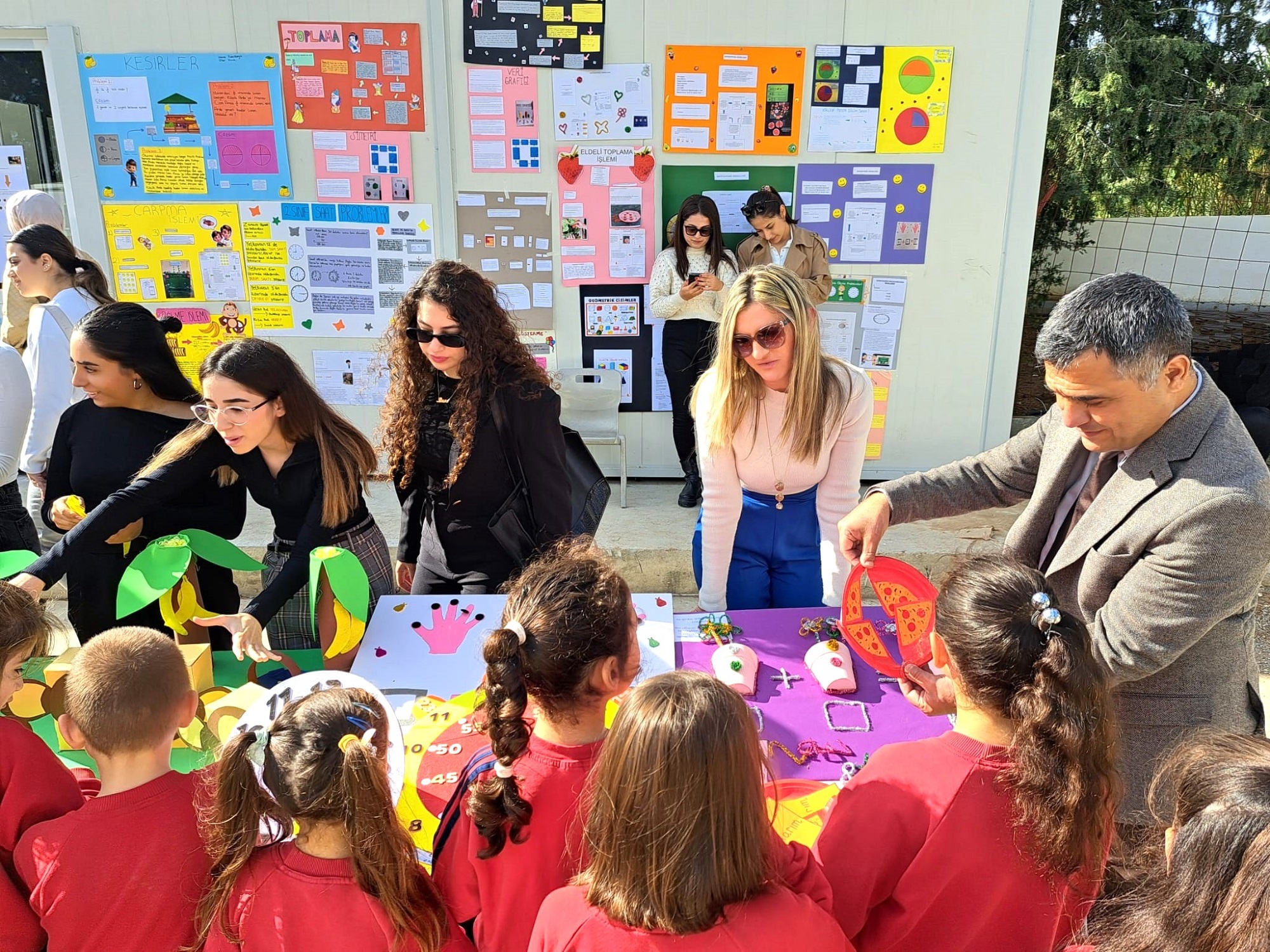 Students at Şehit Mehmet Eray Primary School had a fun and interactive experience with mathematics at the “Mathematical Models and Modeling” exhibition, organized by Near East University. The exhibition, held by the Atatürk Faculty of Education, was part of the “Mathematics Education” course, focusing on the theme of “Realistic Mathematics Education.” The event aimed to present mathematics in a fun, concrete way, making it accessible and engaging for primary school students.