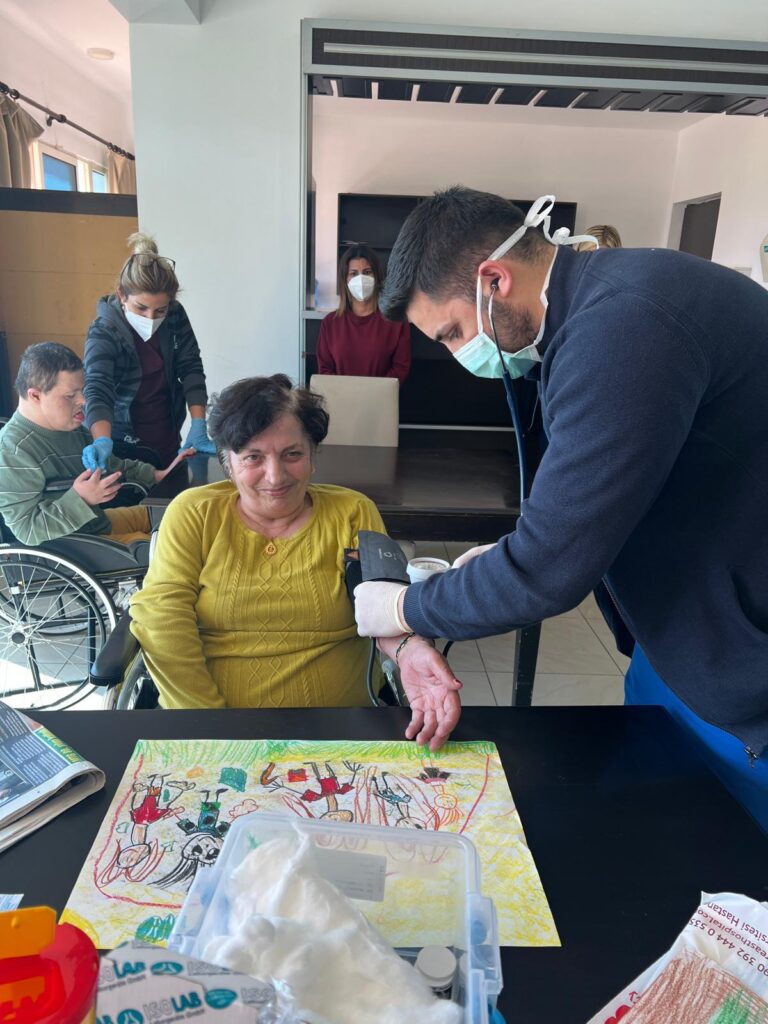The first visit took place at Kalkanlı Nursing Home, where Near East University Hospital Chief Nurse Pervin Turan, Brand and Corporate Communications Manager Zeynep Tosun, and a team of healthcare professionals conducted medical check-ups and spent quality time with residents.