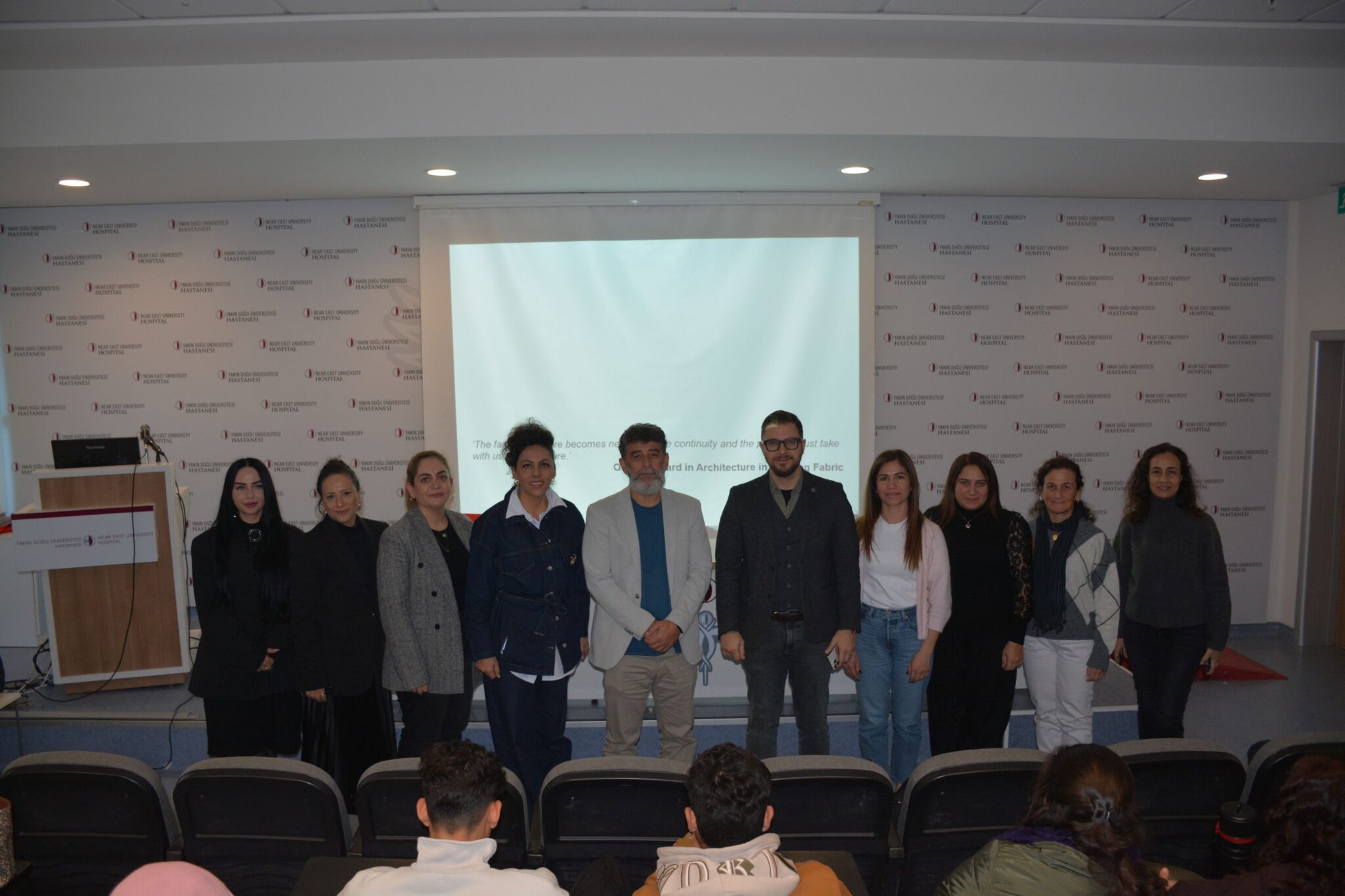 Near East University Faculty of Architecture organized an event titled “Preservation of Cultural Heritage in Architecture and Urban Development,” focusing on contemporary approaches to cultural heritage and sustainability. The event was attended by Onur Olguner, President of the Chamber of Architects under the Union of Turkish Cypriot Engineers and Architects (KTMMOB), along with a large number of architecture and interior architecture students.