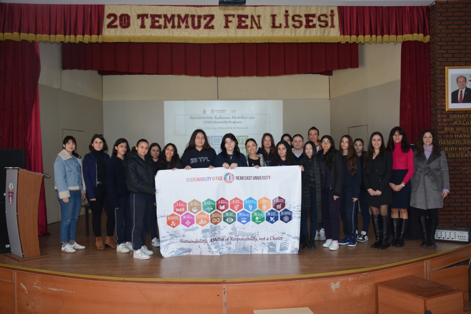 Academics from Near East University conducted a special training program for female students of 20 Temmuz Science High School, introducing them to the United Nations Sustainable Development Goals (SDGs) and the basics of Science, Technology, Engineering, and Mathematics (STEM). The goal of the program was to raise awareness about sustainability and encourage students to set career goals in STEM fields, while also empowering future female leaders.