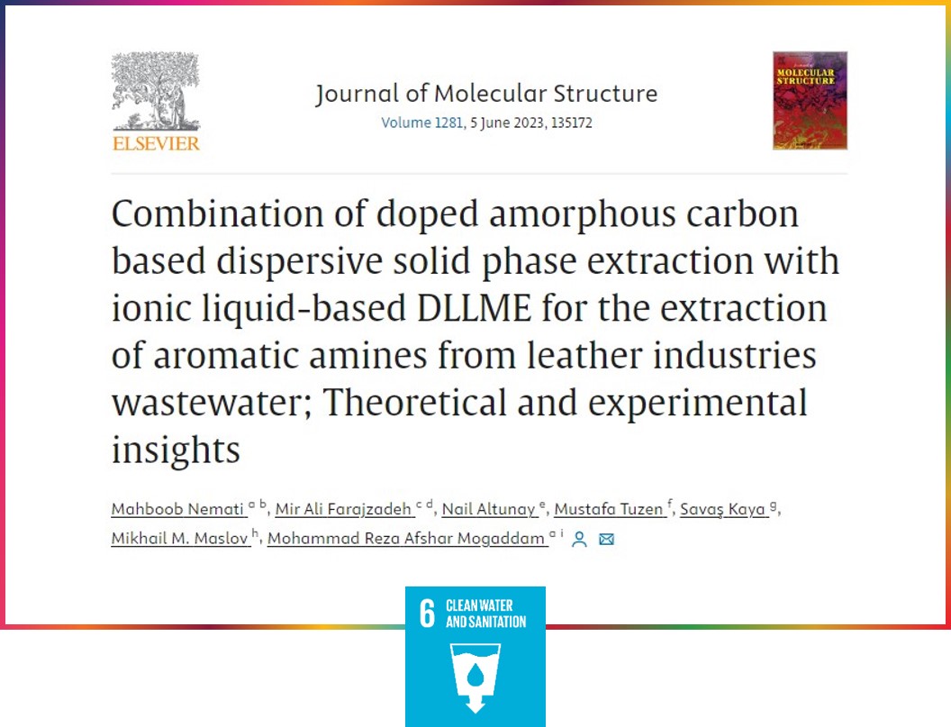Combination of doped amorphous carbon based dispersive solid phase extraction with ionic liquid-based DLLME for the extraction of aromatic amines from leather industries wastewater; Theoretical and experimental insights