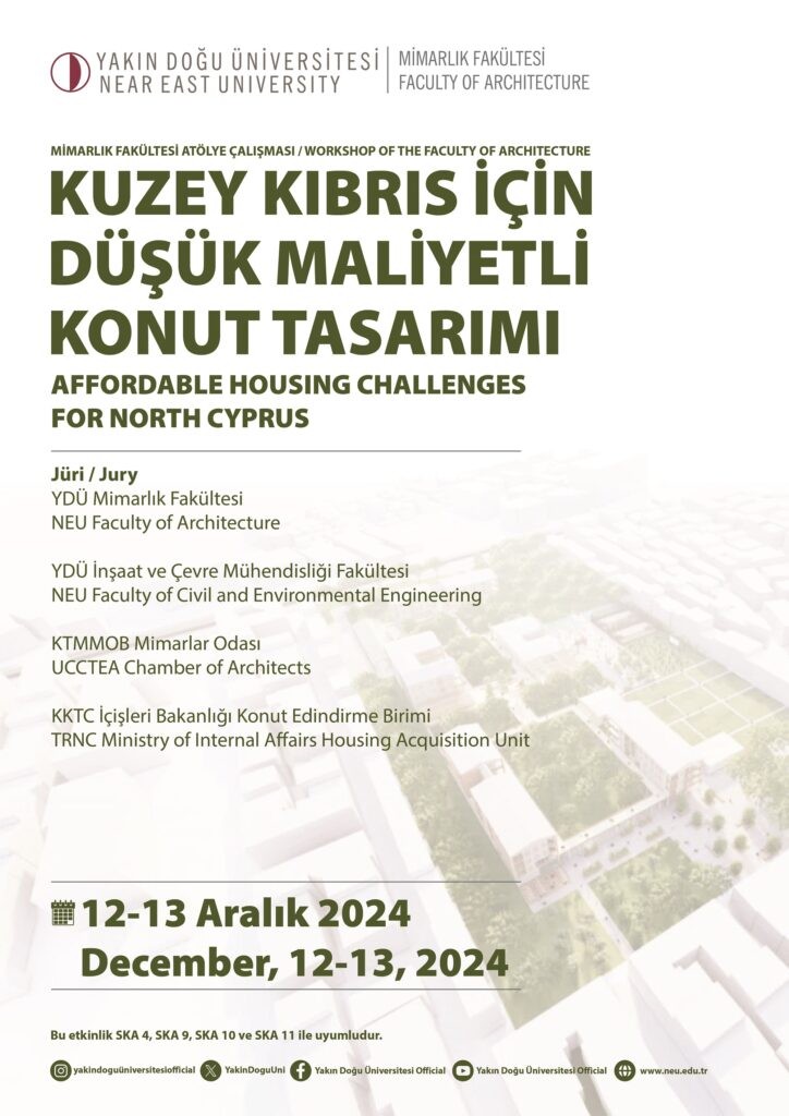 Near East University remains committed to supporting sustainable urban development and community well-being in Northern Cyprus. As part of this mission, the Faculty of Architecture organized a workshop titled “Affordable Housing Design for North Cyprus” on December 12–13, 2024, focusing on accessibility, affordability, and sustainability in housing production.