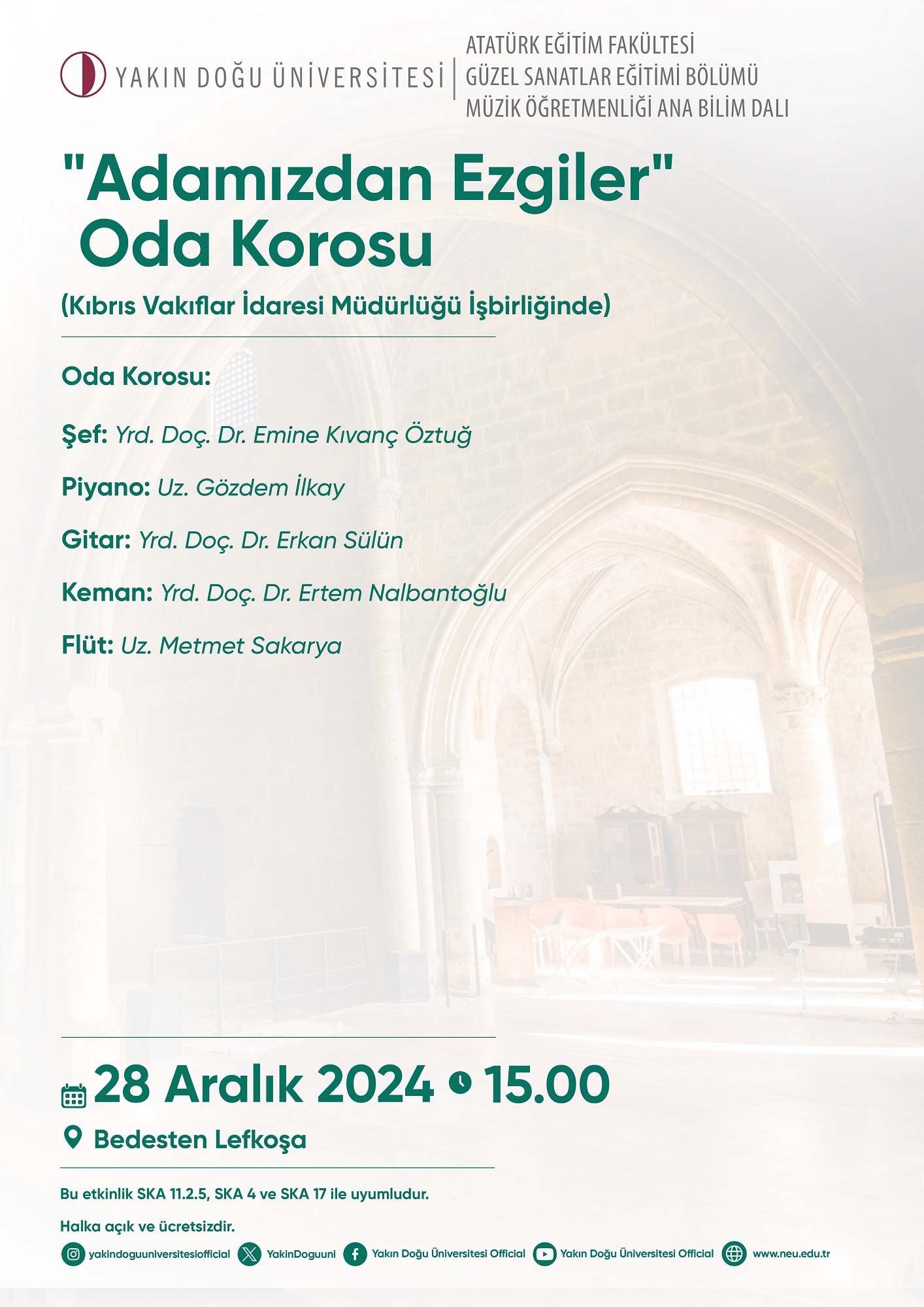 In 2024, Near East University significantly strengthened its contribution to local arts and cultural heritage by organizing 45 public performances and cultural events. These activities reflected the university’s commitment to supporting artistic expression, preserving cultural identity, and expanding community access to the arts. The annual programme included a rich variety of artistic and heritage-focused events, such as: theatre performances by university and community groups, dance shows and stage productions, concerts and musical recitals, documentary screenings, poetry and literature gatherings, museum exhibition openings and cultural heritage presentations. Several activities highlighted traditional Cypriot crafts, music, and culinary culture, offering a platform for the preservation and celebration of the island’s cultural legacy. Through this diverse programme of public performances and heritage events, Near East University continued to play an active role in enriching the cultural life of the community and supporting the wider arts ecosystem.