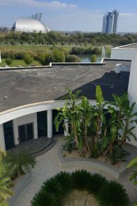 Near East University places great importance on integrating natural elements into campus architecture. Each new building is surrounded by green areas that contribute to the aesthetic and ecological balance of the campus. Some buildings also feature interior courtyards that bring natural light and natural ventilation into indoor spaces, creating a pleasant microclimate and promoting the wellbeing of occupants. These landscaped areas support biodiversity, reduce surface heat, and contribute to the overall sustainability and livability of the built environment.