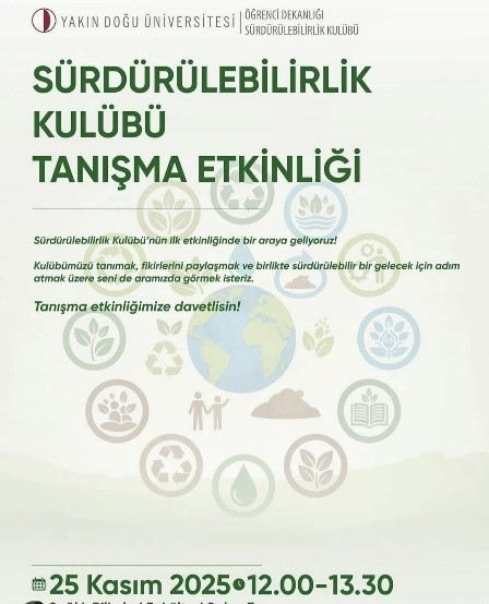 Near East University Sustainability Club is a student-led organization established to raise awareness on sustainability, encourage student engagement with environmental and social responsibility, and promote the values of the Sustainable Development Goals (SDGs) across the university community.