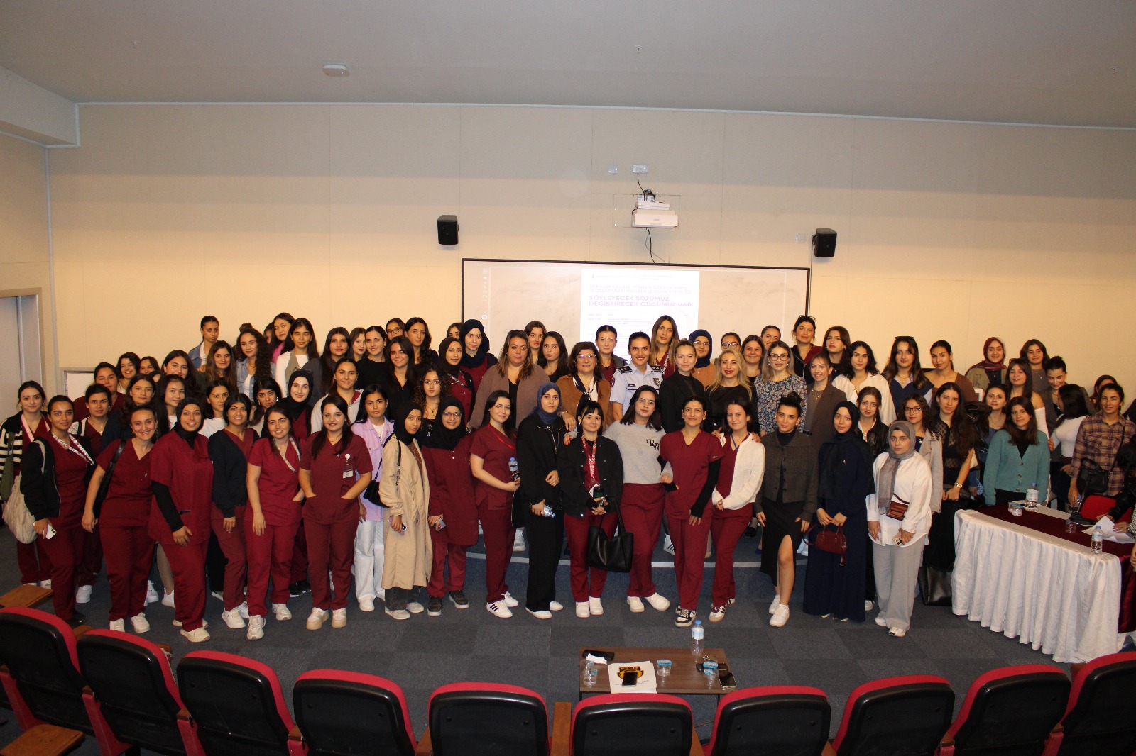 Academics and experts came together at Near East University for an event held in the context of the November 25th International Day for the Elimination of Violence Against Women, delivering strong messages on the multidimensional nature of violence against women and young people. Organized by the Department of Midwifery at the Faculty of Health Sciences under the slogan “We Have a Word to Say, We Have the Power to Change,” the event marked the first in a series of awareness activities planned throughout the week. The program was moderated by Prof. Dr. Adile Öniz Özgören, Dean of the Faculty of Health Sciences, and Assoc. Prof. Dr. Ayça Atay, Head of the Gender Research and Application Center (TOCAM). Opening remarks were delivered by Assoc. Prof. Dr. Filiz Yarıcı, Head of the Midwifery Department, who emphasized in her presentation “Midwives Defend Women’s Rights” that midwives play a vital role not only in childbirth but throughout every stage of women’s lives. She underlined the responsibility of health professionals in identifying, preventing, and responding to violence against women.