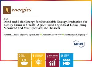 Lagili, H. S. A., Kiraz, A., Kassem, Y., & Gökçekuş, H. (2023). Wind and solar energy for sustainable energy production for family farms in coastal agricultural regions of Libya using measured and multiple satellite datasets. Energies, 16(18), 6725.